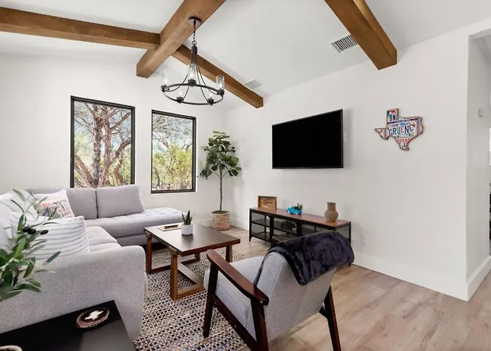 **As for location**, the property's proximity to Gruene Hall provides a unique opportunity to explore live music, shopping, and iconic local landmarks. Easy access to major highways facilitates exploration of the stunning Texas Hill Country, making it simple to embark on scenic drives or adventurous outings. **Transportation options** including local shuttle services and ample parking make navigating the area effortless, ensuring your stay is as convenient and enjoyable as possible. Bask in the warmth of Texan charm at this idyllic retreat, where every aspect is designed for your ultimate comfort and satisfaction.